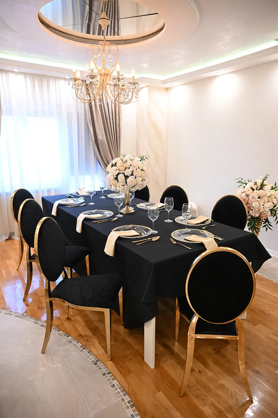 Sa svojim prepoznatljivim ovalnim naslonom i elegantnim linijama, crno – zlatna medaljon stolica donosi sofisticiran i moderan izgled svakom događaju. Njen zlatni dizajn odiše klasičnom elegancijom, dok crna boja unosi notu luksuza i univerzalnosti, lako se uklapajući u različite dekorativne stilove.